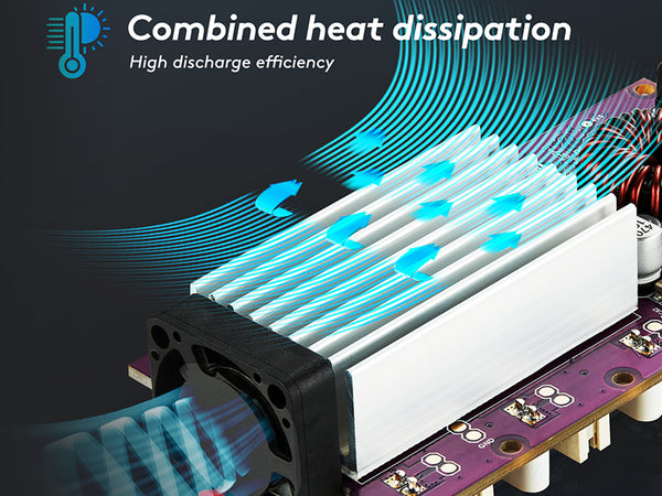 Вентилятор и большой радиатор эффективно отводят тепло, предотвращая перегрев устройства. Это значительно повышает эффективность и скорость разрядки.