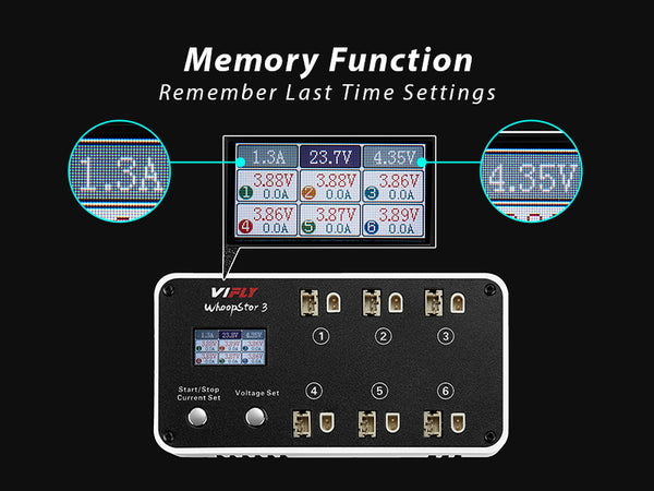 В WIFLY WhoopStor 3 добавлена функция сохранения последних настроек, теперь нет необходимости устанавливать ток зарядки при каждом включении.